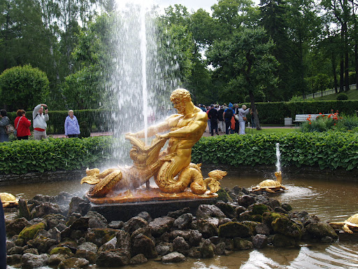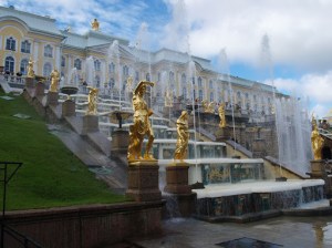 La cerise sur le sundae. Le summum de la beauté orifère. On ne peut visiter Saint-Pétersbourg sans se rendre dans la ville de banlieue de Peterhof, pour visiter les jardins du Palais d’été de Peter. Des centaines de fontaines, certaines gigantesques, embellissent le paysage. Peter s’est inspiré des fontaines de Versailles afin de créer ses propres fontaines, de loin beaucoup plus grandioses qu’à Versailles.