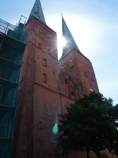 Sitôt débarqués du train, on visite la cité médiévale de Lübeck, qui fait partie du patrimoine mondial de l’UNESCO depuis 1987. Grandement amochée durant la guerre de 39-45, elle a été reconstruite au fil des ans. La porte fortifiée du nom de Holstentor, construite entre 1469 et 1478, nous fait entrer sur une île entourée des canaux de la Trave. À l’intérieur, un musée sur l’histoire locale. Ici débute alors notre exploration à pied de la cité.