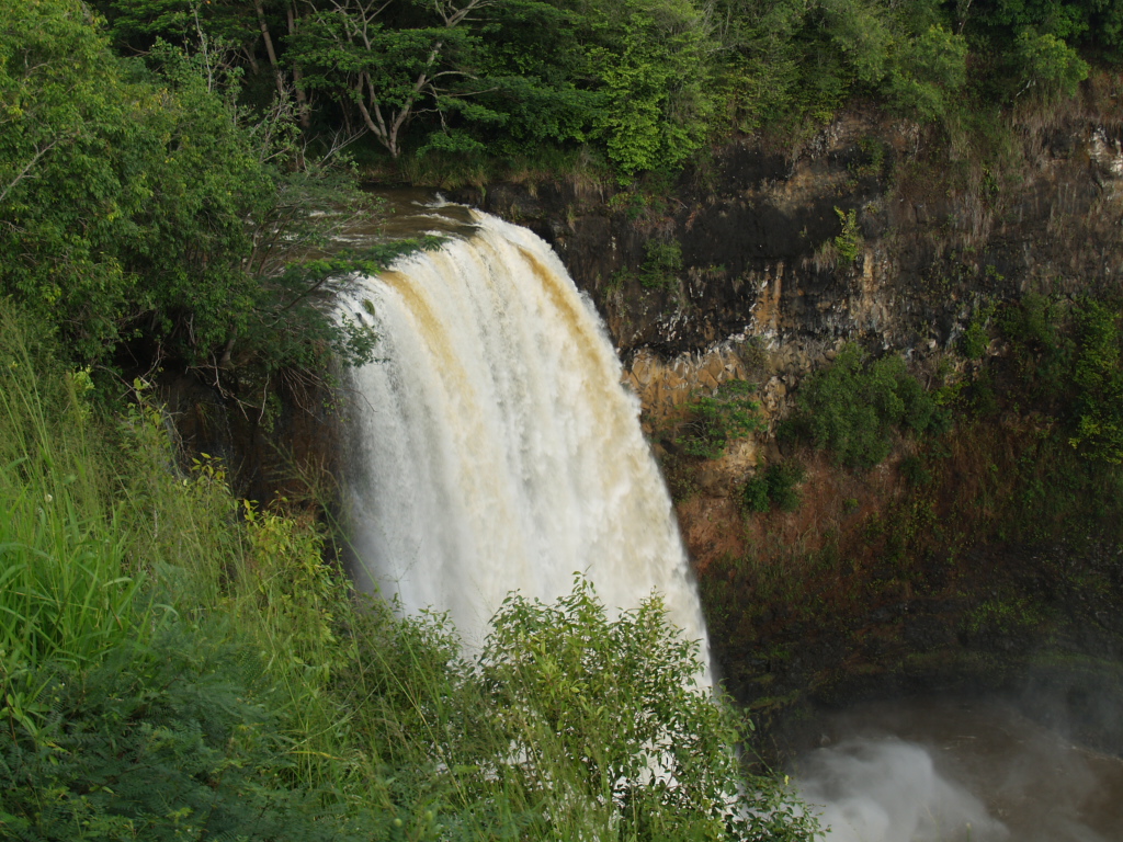 On décide de prendre un taxi pour la journée, avec un couple de personnes âgées, pour économiser les coûts. Notre guide Janice nous amène d’abord voir les Wailua Falls, dans la région sud-est de l’île, près de la rivière Wailua. Une falaise d’une centaine de pieds se dresse devant nous. En pleine montagne, il faut faire attention aux changements drastiques de climat. Une seconde, il fait soleil, la seconde d’après, une averse diluvienne nous tombe dessus.