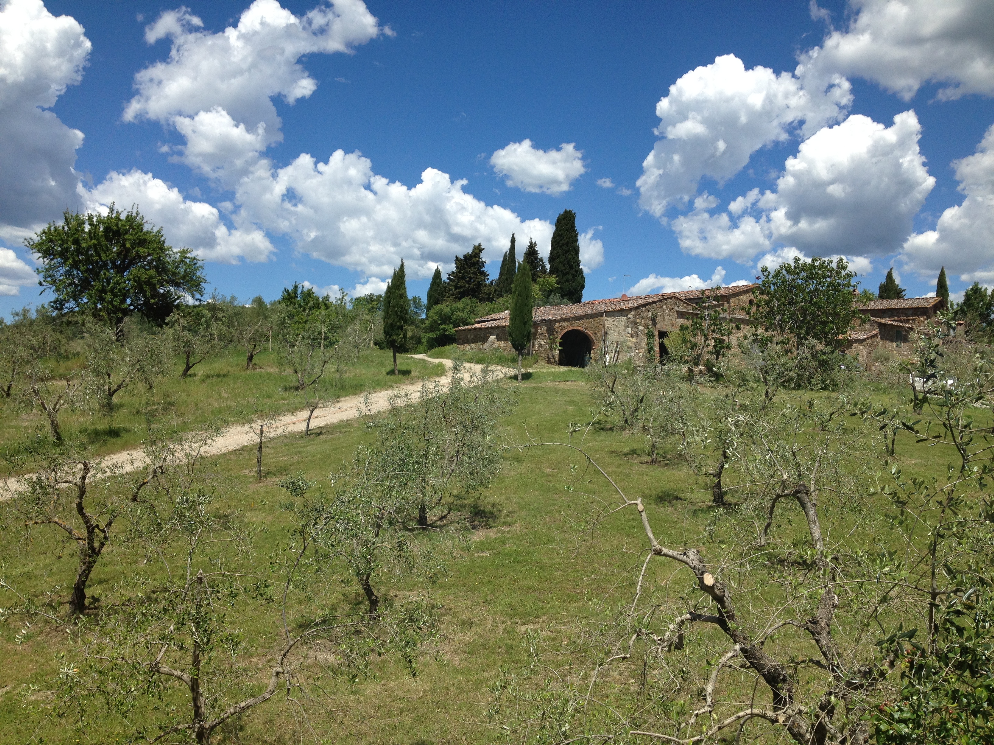 Mon regard fait un 360 degrés. Des collines de vignes, quelques maisons de fermes vieillottes, de minuscules chemins de gravier. À côté du restaurant, une ferme a été convertie en hôtel pour les touristes en quête de tranquillité. Fattoria di Rignana. Le seul bruit audible est un chien qui jappe au loin.