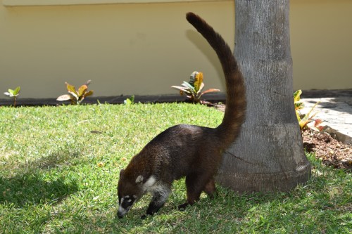 Une autre espèce qui a retenu mon attention est le coati. C’est notre raton laveur mexicain. Nez pointu, longue queue, il se nourrit d’insectes, de fruits, de reptiles, de rongeurs, de petits oiseaux et de… tarentules. Donc, rassurez-vous, vous ne vous ferez pas grignoter les orteils.