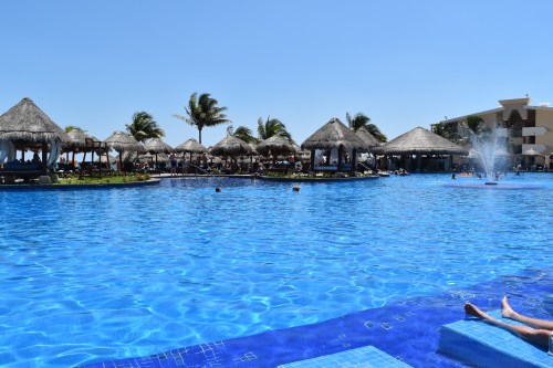 La piscine de l’hôtel Now Sapphire est la plus grande que j’aie vue jusqu’à maintenant dans un complexe hôtelier, et dont l’eau est la plus propre aussi. Jamais, même si l’hôtel était complet lors de notre passage, je ne m’y suis sentie à l’étroit. Tout le monde y trouve sa place; il y a même un bain à remous intégré, des douches d’hydromassage et des chaises longues en céramique. Le bar dans la piscine est aussi très populaire.