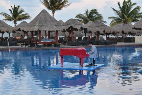 Les activités en soirée sont variées, bien qu’elle n’égalent pas celles offertes sur les navires de croisière, qui sont orchestrées pour la plupart par des scénaristes expérimentés, et non par les animateurs eux-mêmes. Celle qui m’a le plus enthousiasmée est celle des danseurs de breakdance et d’un spectacle de son et lumière. Un soir, on nous a même présenté le trio « Il divo », les trois ténors italiens. Ils étaient sur une estrade montée pour l’occasion, en plein centre de la piscine. Sur une autre estrade, un piano à queue rouge faisait des pieds de nez à l’eau qui l’entourait.