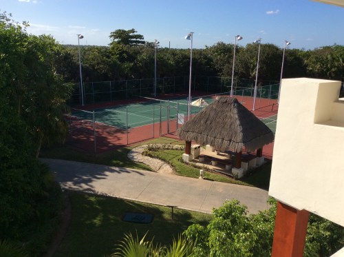 Vue de notre balcon, qui donnait en partie sur les terrains de tennis