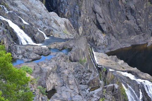 En attendant notre poursuite du voyage en autobus, je me promène sur le bord du petit étang d’eau ci-dessus, c’est calme et…. ô surprise! Je ne m’attends pas du tout à celle-là! Des papillons bleus! Ceux qui s’agitent devant moi sont vraiment gros, mais malheureusement très rapides aussi, alors le temps de positionner mon iPhone et ils s’envolent, portés par leur liberté! Ce sont des papillons Ulysse d’un bleu électrique, d’une rareté désarmante et à la vie si éphémère. Mon rêve se réalise avant même d’avoir espéré en rencontrer un au cours de ma vie. Cette vie, justement, nous réserve parfois des surprises que l’on doit accueillir avec bonté; à elle seule, cette pure merveille de papillon égaie mon passage dans la forêt tropicale de Kuranda.