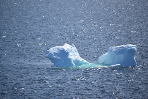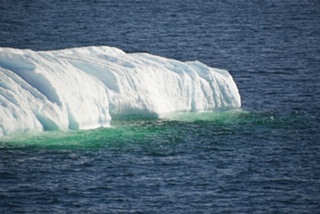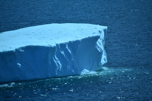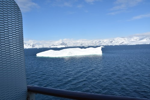Vue de notre balcon. On peut imaginer que pour passer à côté de ce bloc de glace, les instruments du navire avaient détecté que la base de celui-ci ne s’approchait pas trop de la coque sous l’eau.