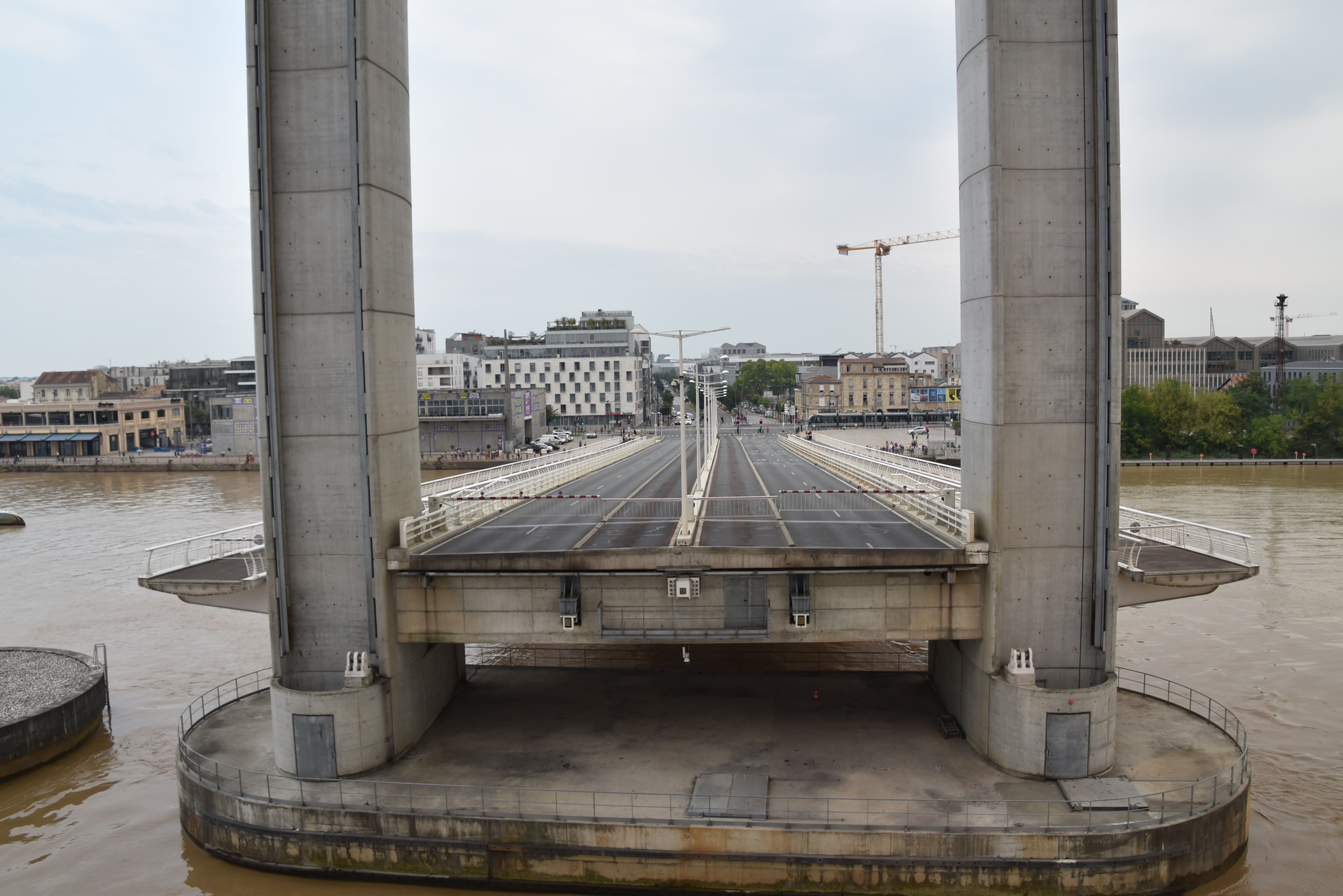 Pour accoster au port, on doit passer sous deux ponts : notre navire a juste assez d’espace pour passer sous le premier, mais la ville doit condamner temporairement l’utilisation du deuxième pont, qui doit lever sa plateforme pour nous laisser passer. Pas toujours commode pour la circulation automobile et les habitants.