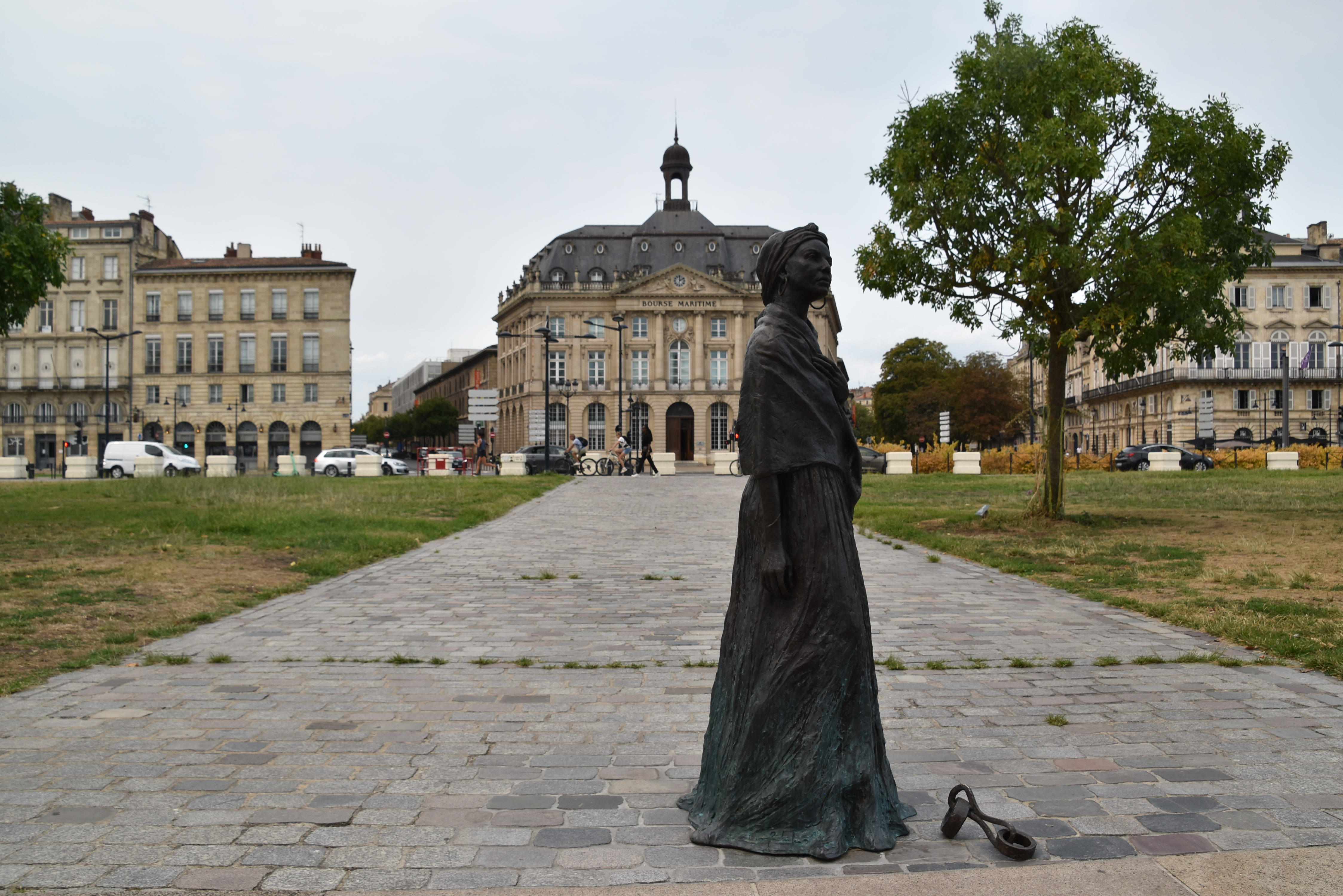 Nous débarquons face à une statue de bronze noire, érigée en 2019 en l’honneur de Modeste Testas, une esclave africaine enlevée lorsqu’elle était adolescente. Il faut dire que Bordeaux s’est enrichie grâce au travail acharné des esclaves noirs. Modeste avait été vendue à deux commerçants de la ville, qui l’avaient envoyée sur l’île d’Haïti, à Saint-Domingue, travailler dans leur sucrerie. En 1795, elle a suivi François Testas aux États-Unis, où il lui a redonné sa liberté, et ce dernier, à sa mort, lui a légué des terres à Saint-Domingue. Elle y est retournée jusqu’à son décès en 1870, à l’âge de 105 ans.