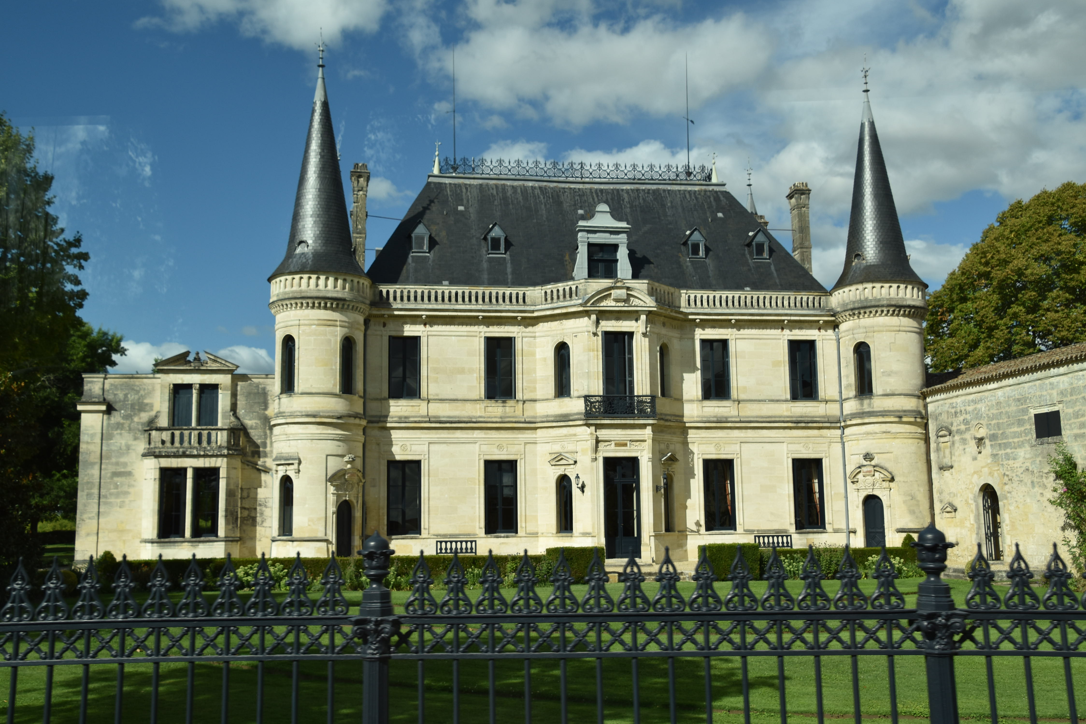 Direction Château Lanessan, dans la région du Médoc. En chemin, la guide nous raconte que le 20 juin, des grêlons de la grosseur d’une balle de tennis et de forts vents se sont abattus sur la région, arrachant le toit des maisons du Taillan-Médoc, en Gironde. La dévastation était telle que les travailleurs de la construction n’avaient pas encore réussi à réparer toutes les habitations ou commerces. Désolant, ce dont la nature est capable.