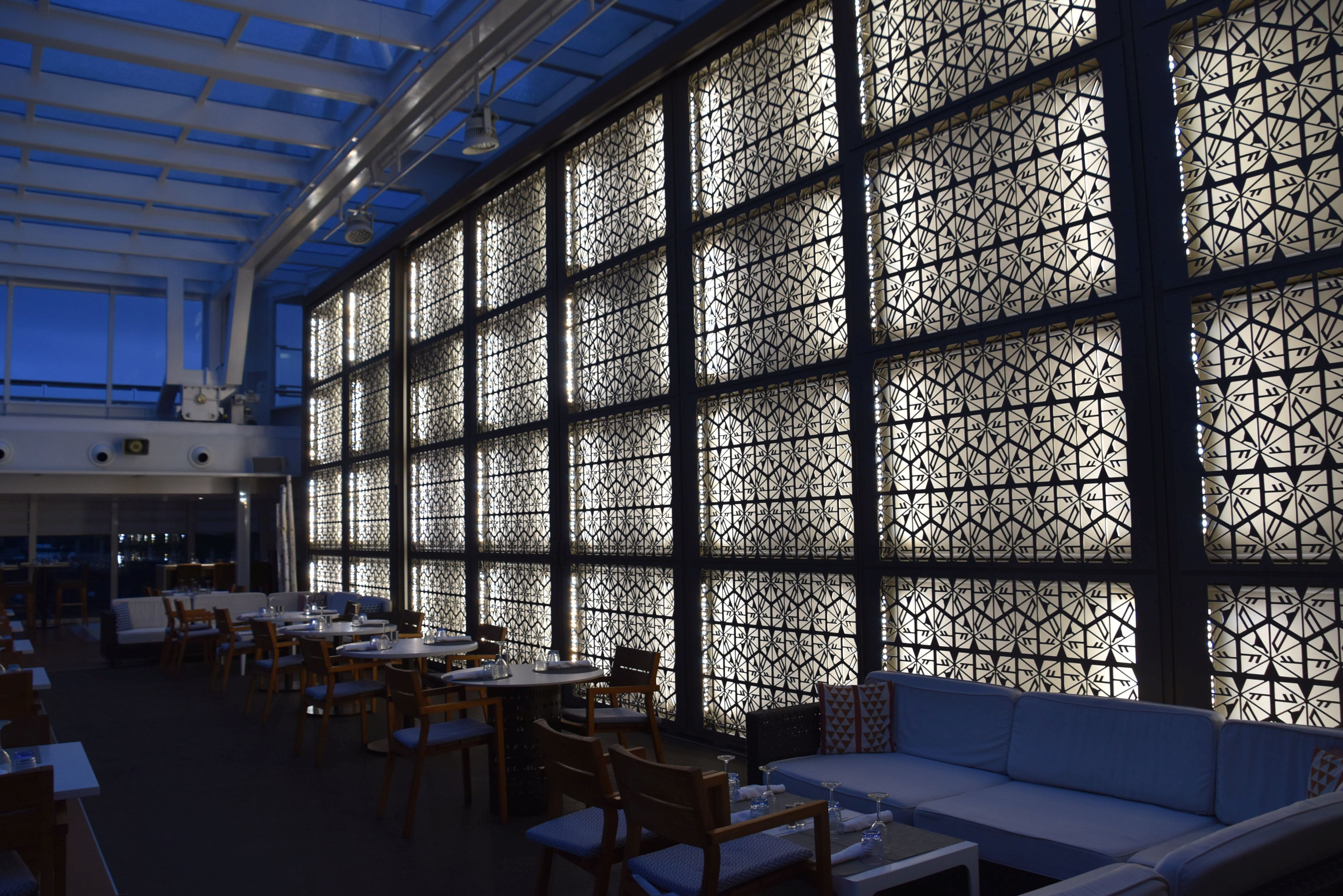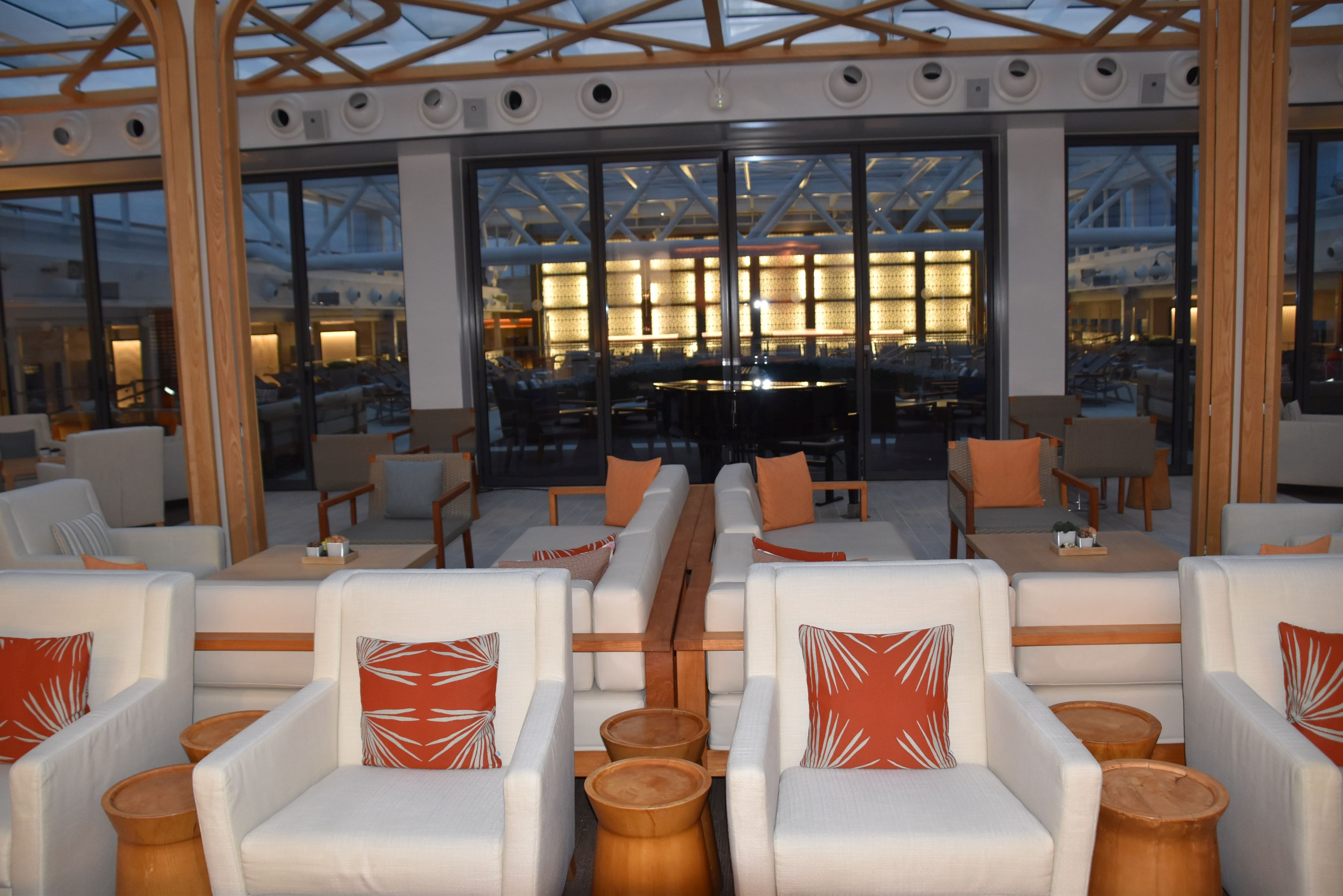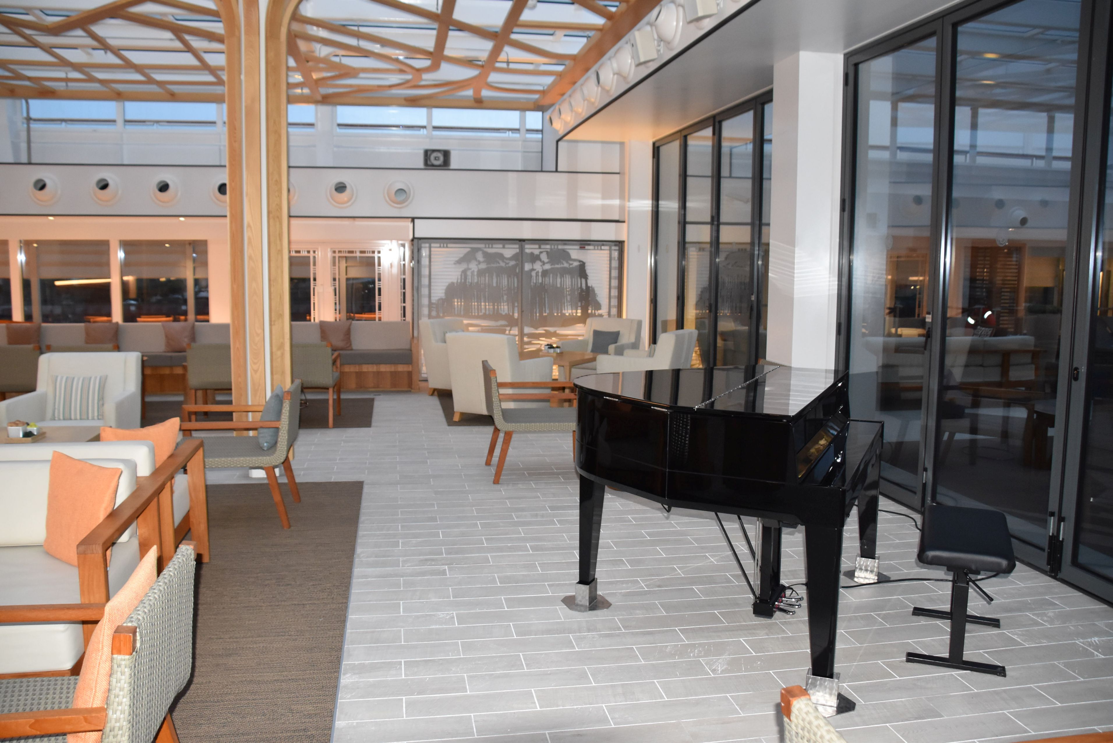 On monte enfin à bord. C’était une première pour nous avec la compagnie de croisière Viking. Il accueille 930 passagers, ce qui en fait un navire de grandeur moyenne (j’adore!). Le Viking Orion a commencé à sillonner la mer en 2019, il est donc presque neuf. J’ai apprécié son allure sobre, son ambiance zen, son décor épuré, loin du gling gling qu’on peut voir ailleurs. Les boiseries sont omniprésentes et élégantes.
