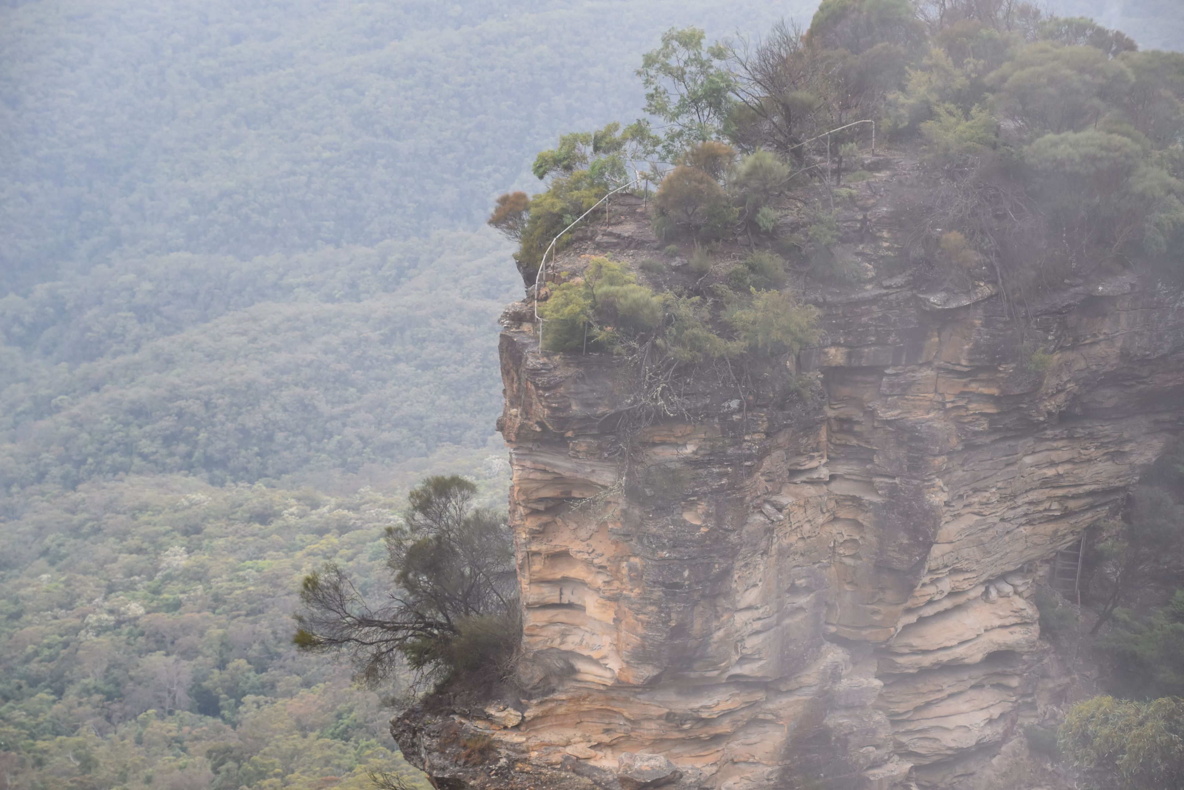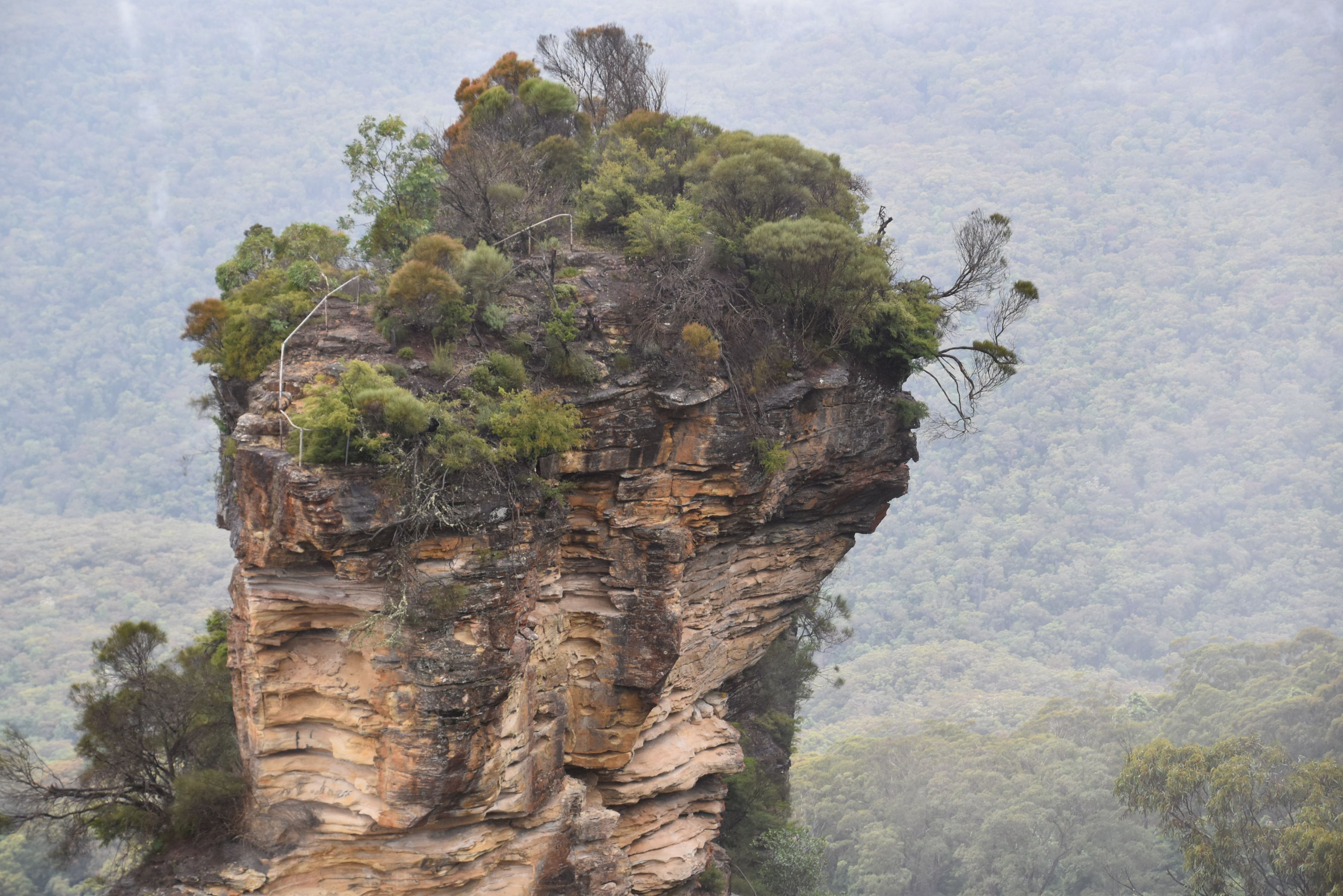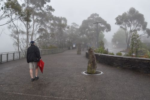 À notre arrivée, le site d’Echo Point était plongé dans un épais brouillard, mais j’ai eu la chance, l’espace de 15 secondes, de capter ces immenses pics rocheux, les Three sisters. Le vent était tellement puissant qu’un parapluie était devenu inutile. Ce site, classé au Patrimoine mondial de l’UNESCO, a inspiré le film Jurassic Park quant aux types de végétaux et d’animaux à y présenter.