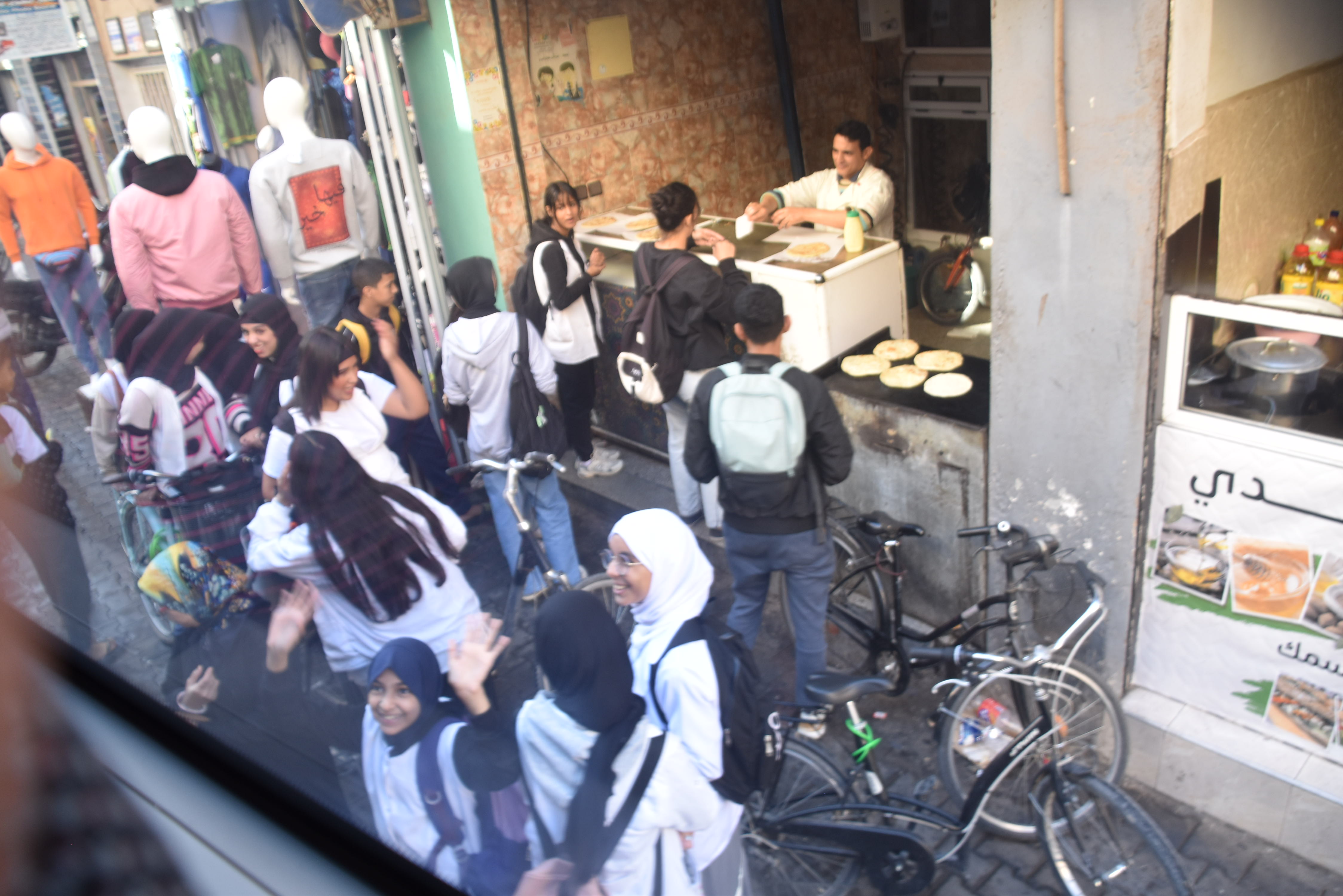 On arrive à Taroudant, une ville emmurée sans être coupée du monde, avec huit immenses portes d’entrée. Les remparts et les tours protégeaient la dynastie saadienne et ses sultans contre les envahisseurs dans les années 1500-1600. La ville impressionne avec ses 7 km par 32 km. À l’intérieur de ses murs, le chaos règne. On s’imprègne de la culture berbère.