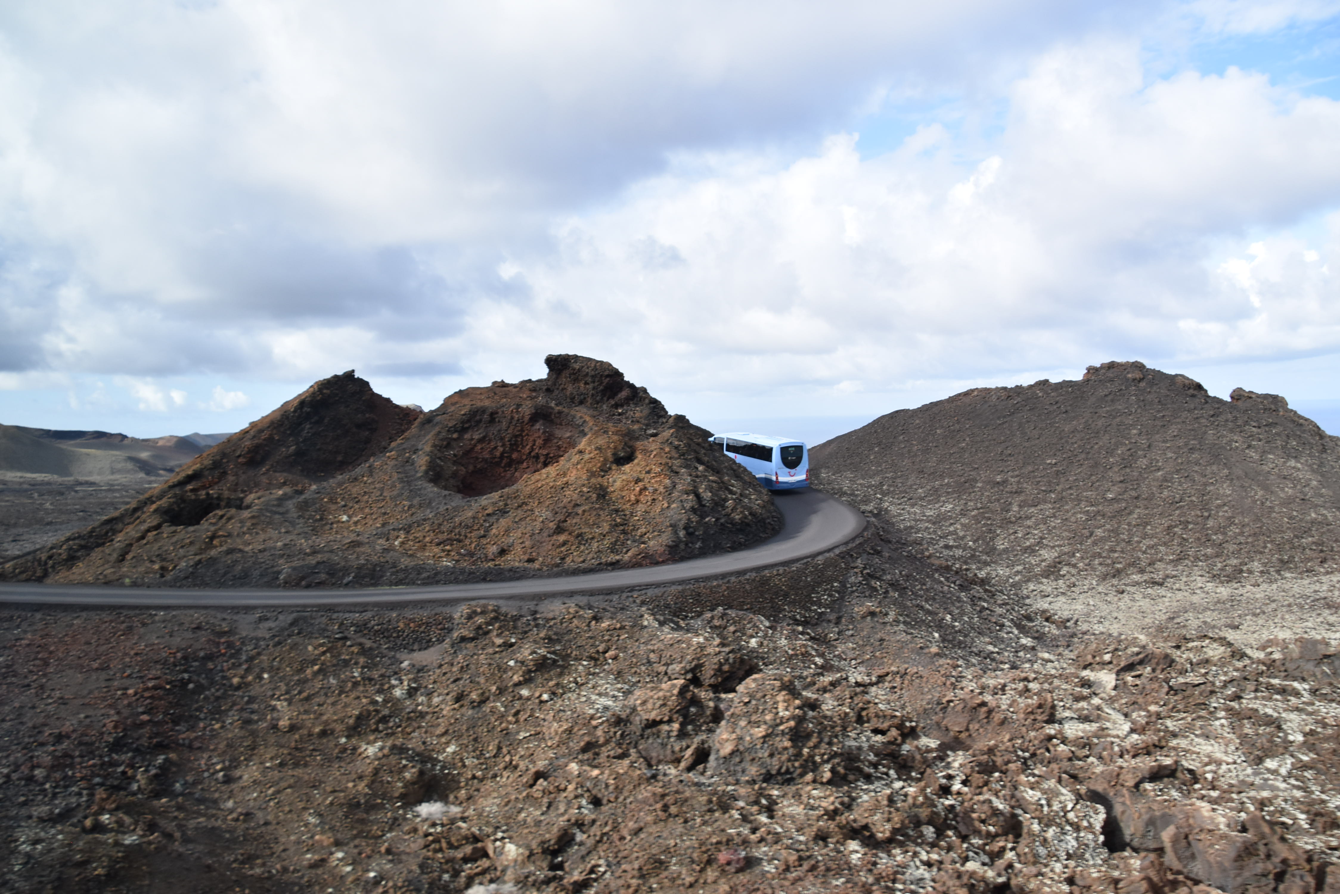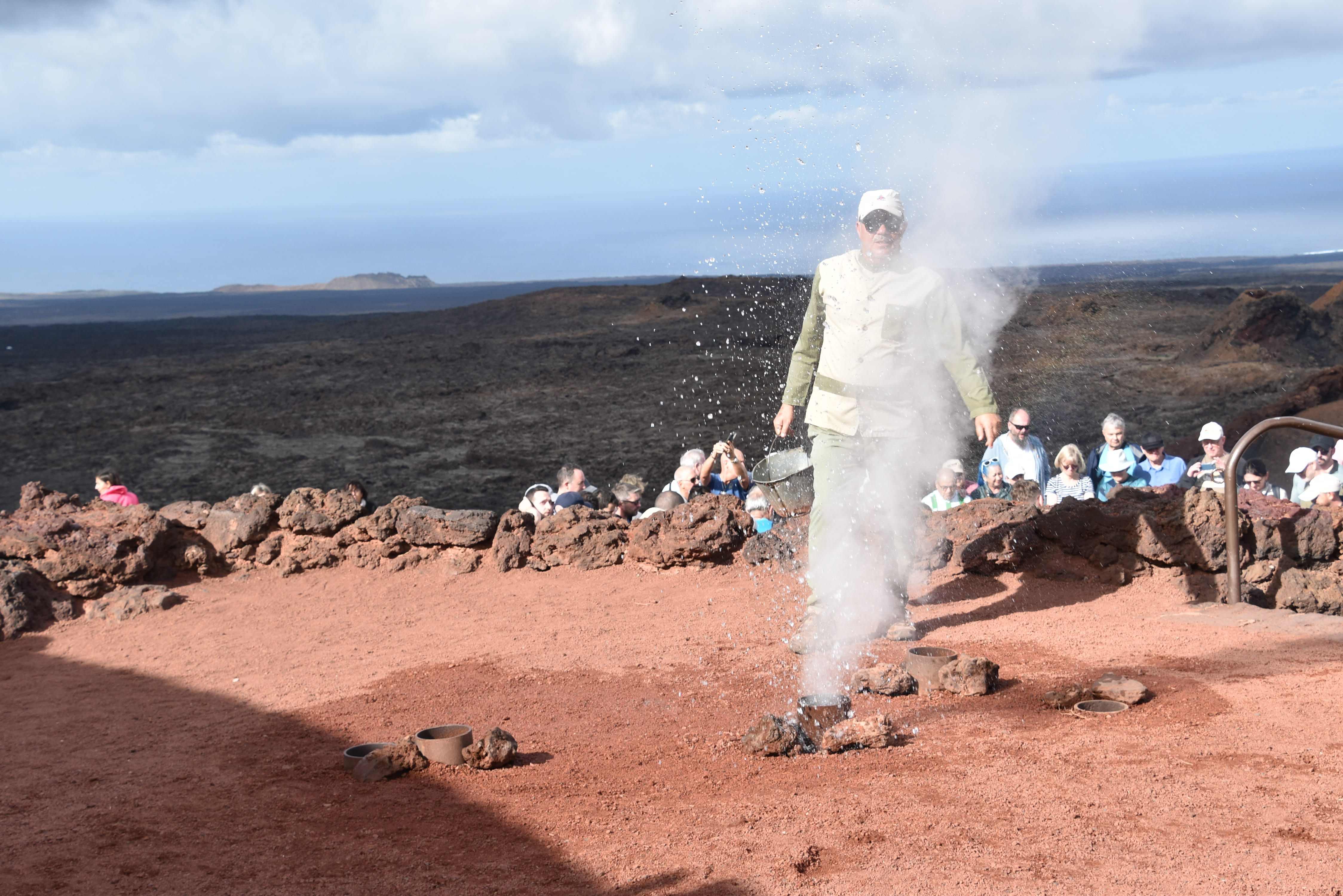 Le parc national de Timanfaya, façonné par les éruptions volcaniques des années 1730, nous méduse. Traverser ces Montañas del Fuego (montagnes de feu) en autobus promet des « Hiiii » et des « Haaaa » bien exclamés, c’est à se demander si on en sortira vivants. Les autos sont interdites. On comprend vite pourquoi. Les virages en dents de scie, vertigineux, donnent le tournis. Des routes à sens unique, sans parapets, ajoutent au dramatique du lieu. En 45 minutes, on contourne plusieurs cratères et pics rocheux, tous plus extravagants les uns que les autres. Seuls les chauffeurs d’autocar expérimentés peuvent conduire dans ces montagnes. Les tours guidés sont recommandés, sinon les automobilistes doivent patienter trois heures avant d’accéder aux démonstrations géothermiques.