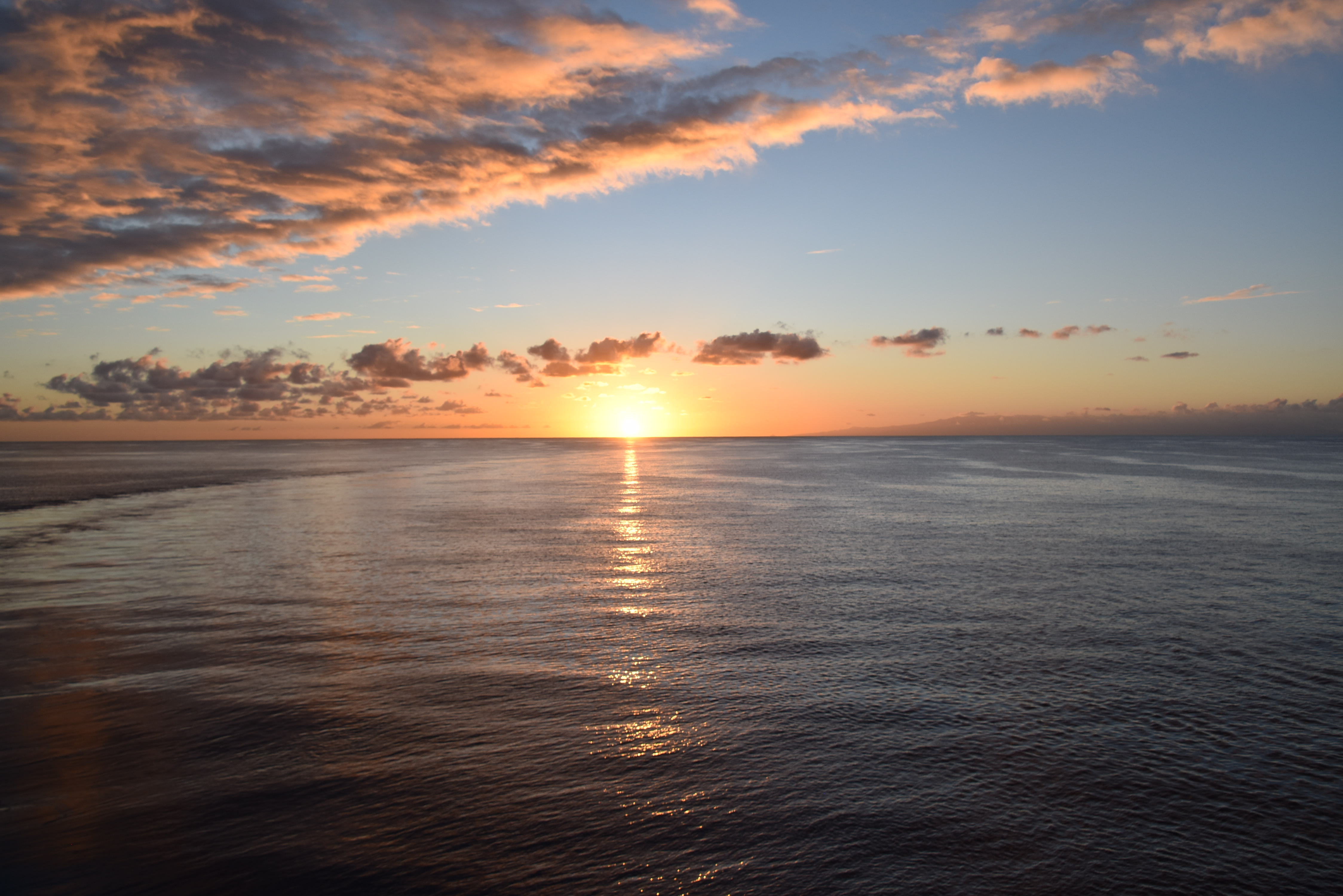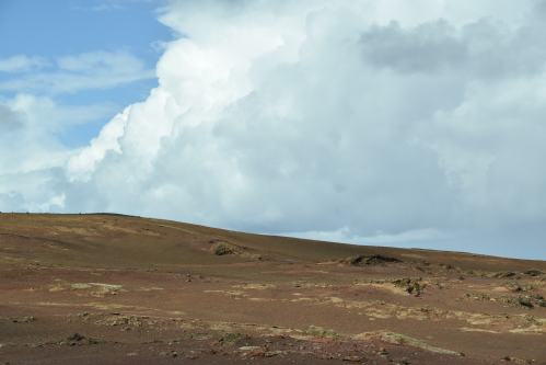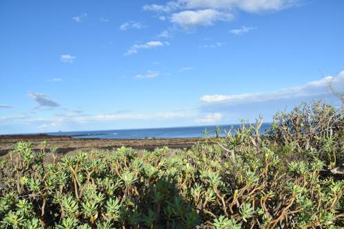 Un système d’alimentation en eau a été construit, car l’île manque cruellement d’eau. Il y pleut environ 10 jours par année. Pourtant, aujourd’hui, un gros nuage inonde notre route, mais pas très longtemps. Les cyclistes et randonneurs ne la trouvent pas drôle! C’est qu’ici, il n’y a ni abris ni arbres pour se protéger des ondées. Mais se promener dans les nombreux sentiers doit être euphorisant. Comme si notre être se fondait à cette nature mystérieuse.