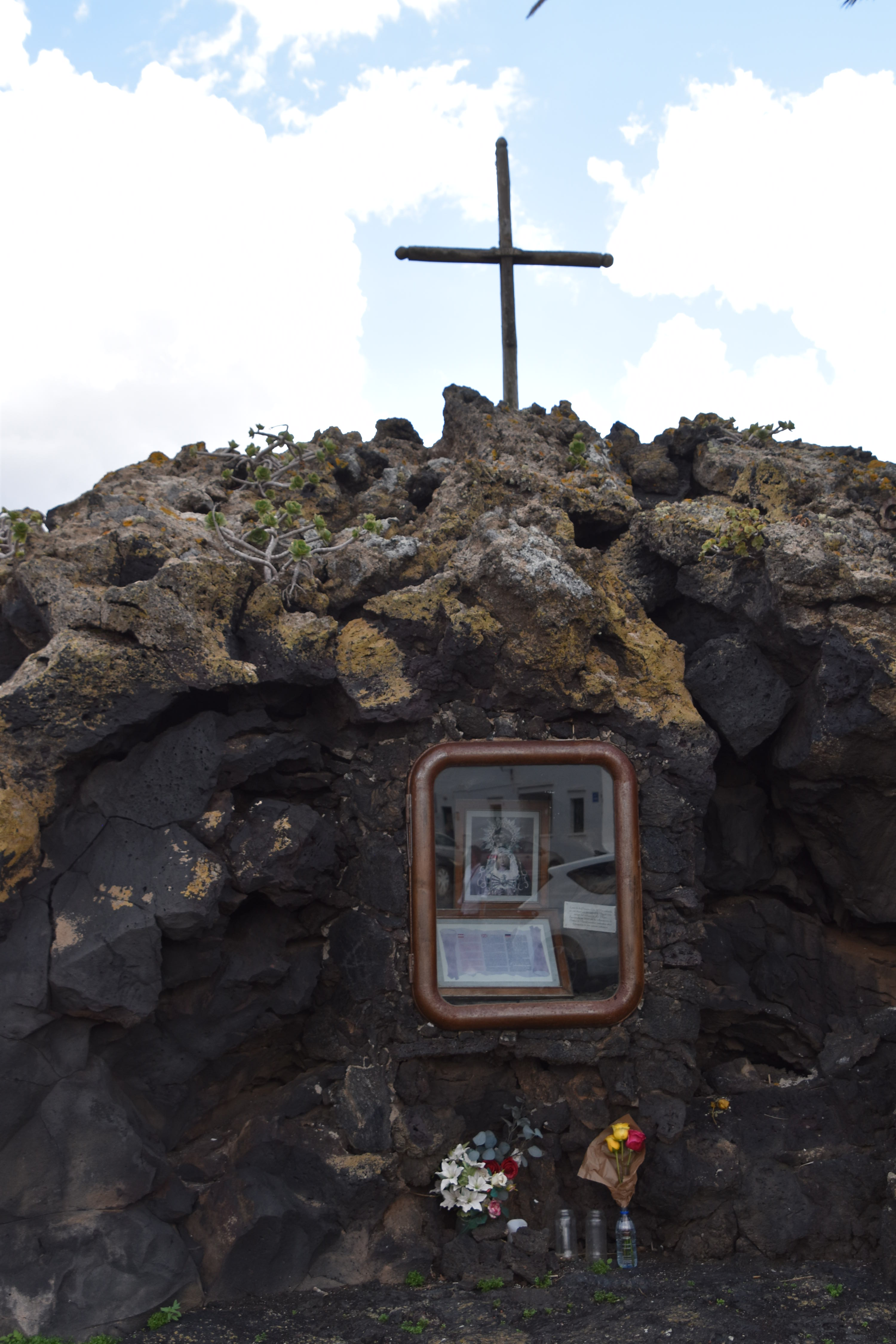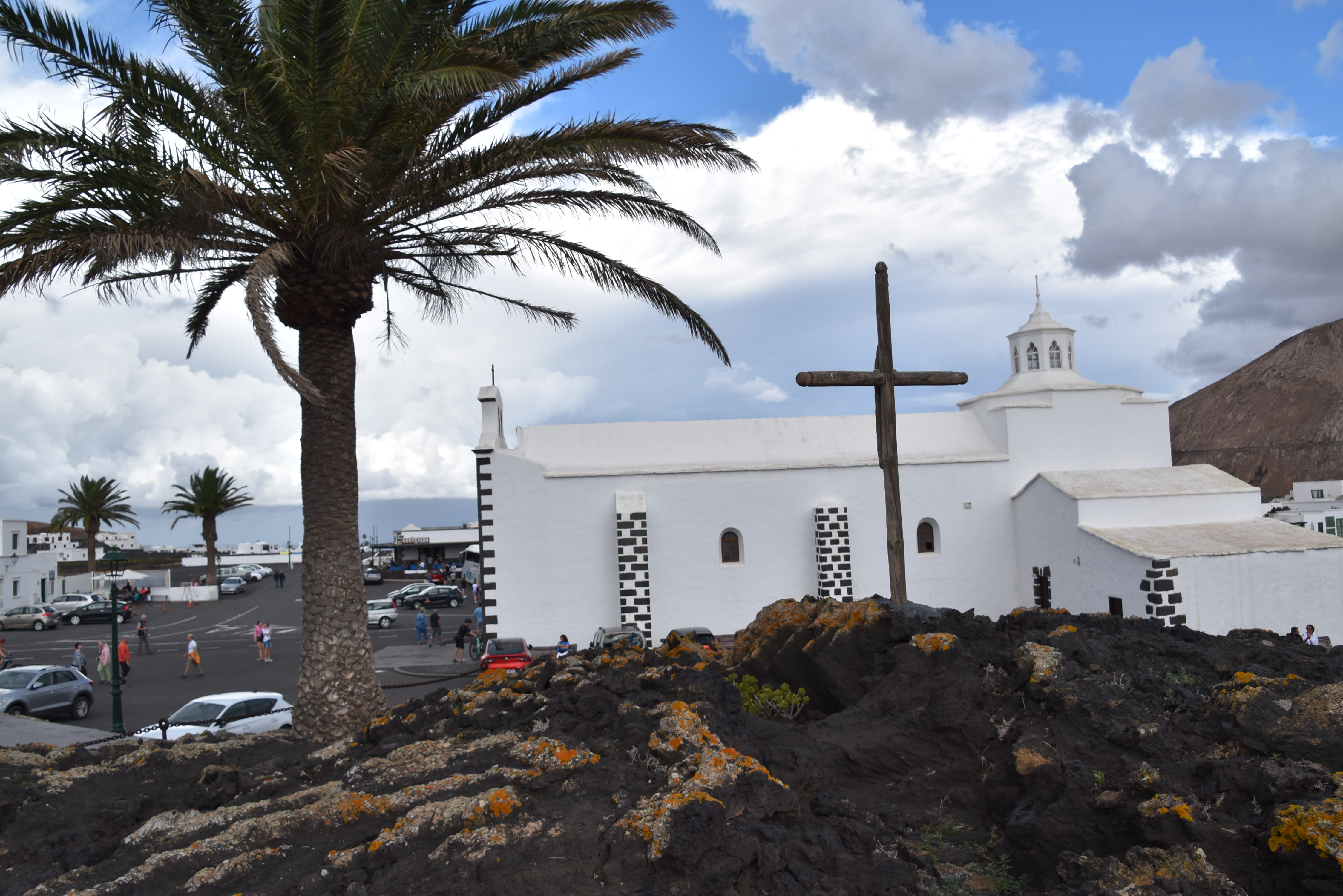 Le village Mancha Blanca compte une petite église, au pied de la Montaña de Los Dolores, appelée l’Ermita de Los Dolores (Notre-Dame des Douleurs). L’histoire dit que les villageois avaient promis à la vierge Marie d’ériger une église si la coulée de lave du volcan Caldera Blanca (Cratère Blanc) arrêtait son parcours et épargnait le village. Leur promesse fut tenue et une croix fut érigée pour remercier la patronne de Lanzarote. Aujourd’hui, l’église est ouverte aux touristes et l’on peut se recueillir près de la croix, lieu où la lave a séché, à quelques pieds de l’église. Depuis, le village se sent béni et protégé.