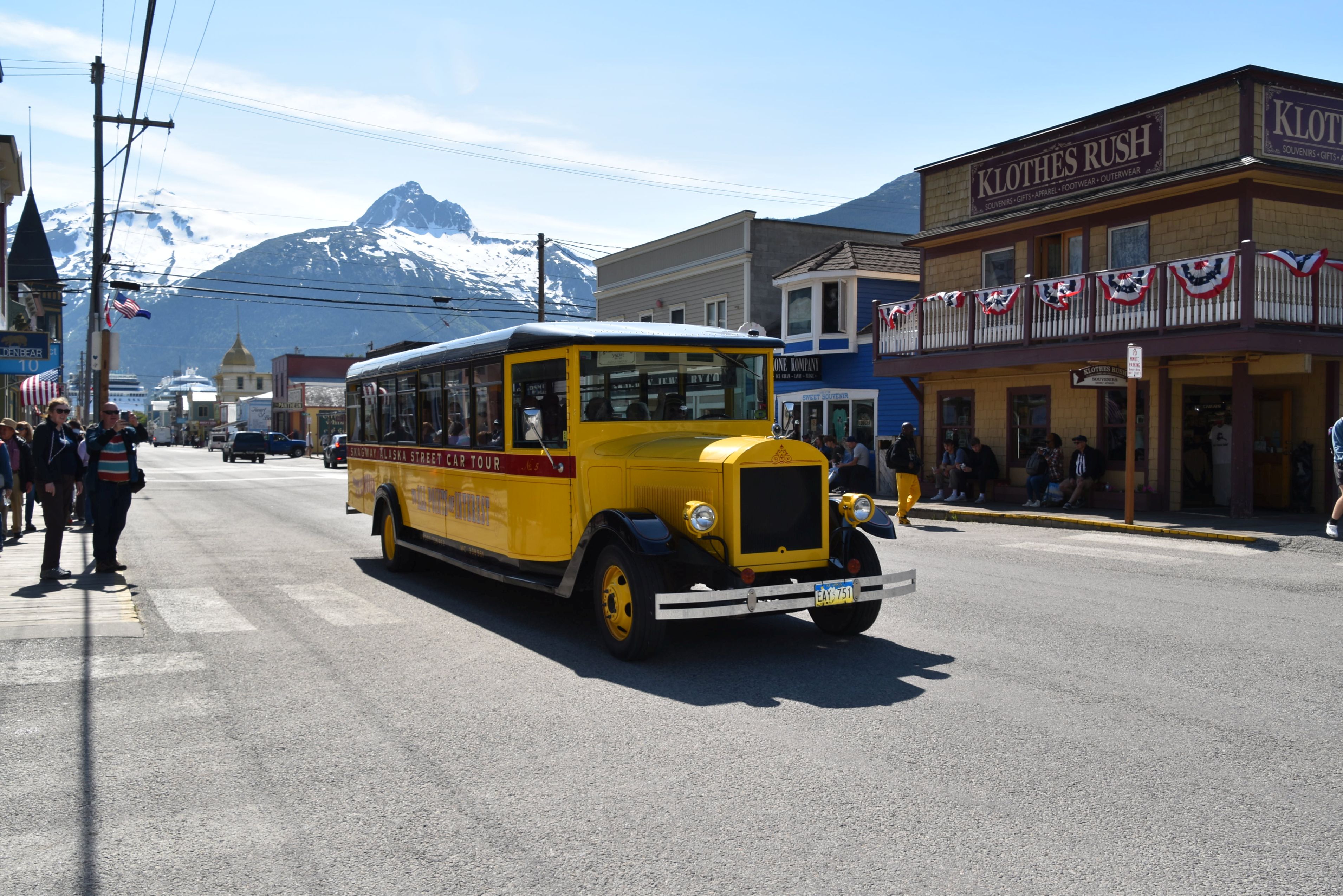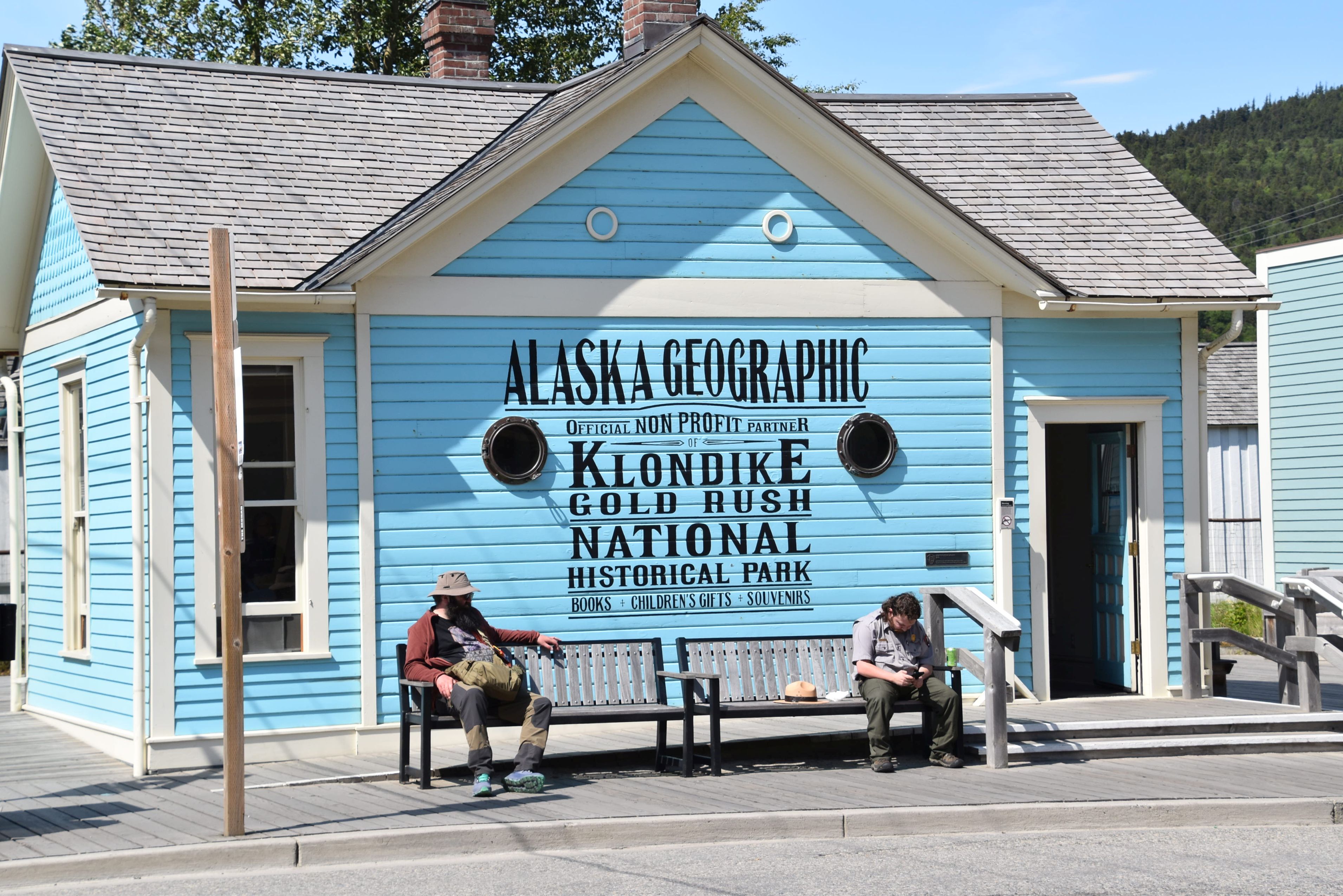 Skagway est cette ville construite au point de départ de la route vers l’or. Une voie ferrée y a été construite, au pic et à la pelle. Aujourd’hui, cet endroit compte 1 173 habitants et 15 blocs de rues. Malgré sa petitesse, la ville est la 18e destination la plus visitée au monde et 45 minutes suffisent pour y faire le tour. Le Saloon Red Onion était le lieu de célébration pour les gens qui avaient trouvé de l’or. Près de là, à Dead Horse Gulch, 3 000 chevaux sont morts en transportant, en 1896, les provisions d’aliments pour un an que les chercheurs d’or devaient avoir avant d’entreprendre le grand voyage vers le métal précieux. Ces chevaux et ces hommes devaient monter le col Chilkoot, affrontant les intempéries de l’hiver, à leurs risques et périls. Beaucoup sont morts en voulant s’enrichir. La ruée de l’or du Klondike a eu lieu de 1896 à 1900.