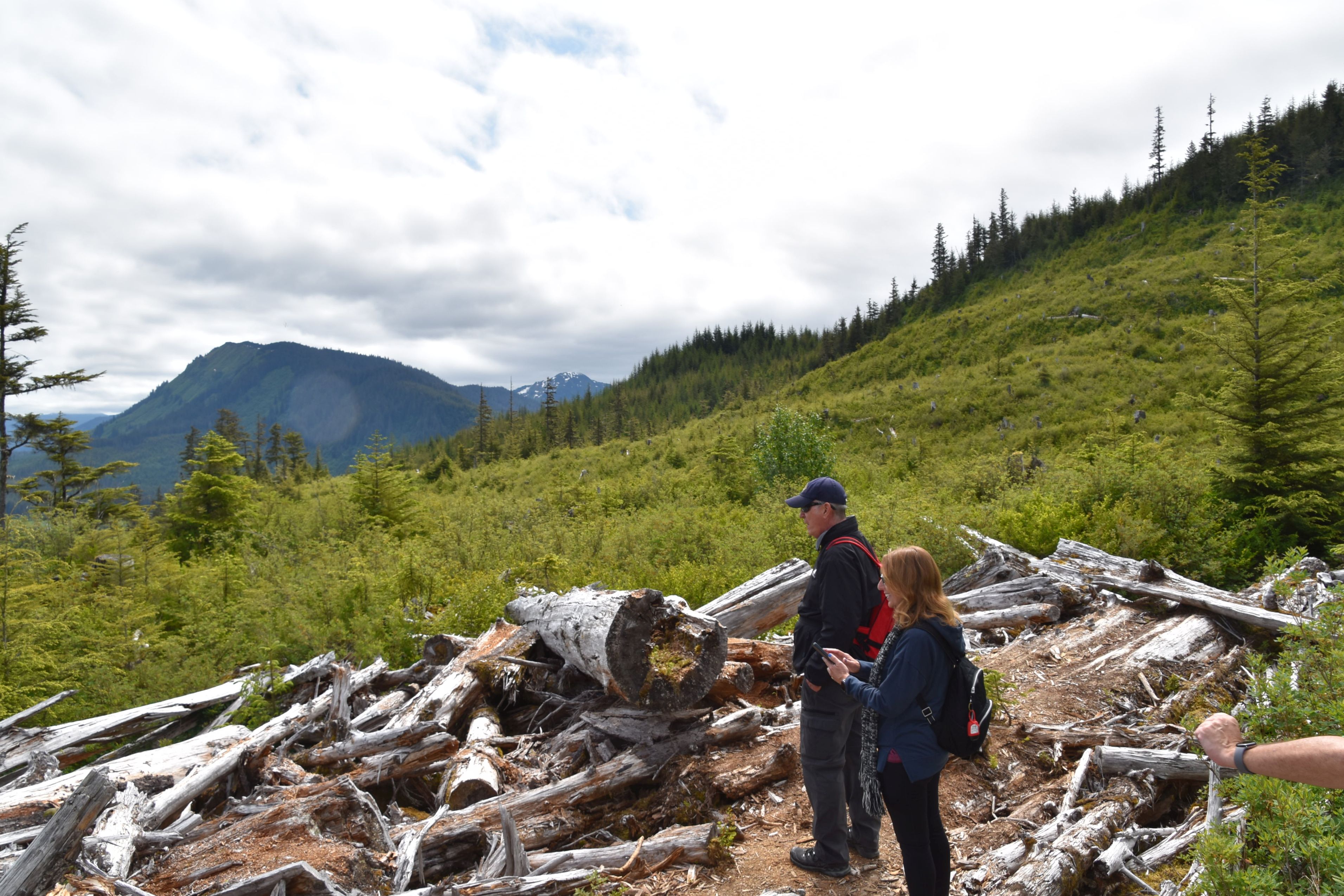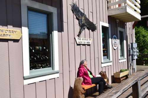 Ce port est le seul privé en Alaska pouvant accueillir les croisiéristes. Sa population n’est que de 765 personnes; la plupart sont des Autochtones natifs de l’endroit. Le site contient trois restaurants, quelques boutiques… et on peut y apercevoir 2,5 ours par mille carré! En excursion à Hoonah, je suis un guide en forêt, et le groupe de marcheurs est suivi d’un garde-chasse, carabine sous l’épaule… juste au cas où. Le guide nous explique les plantes dont il fallait se méfier, et celles qu’on pouvait manger. Un ours était passé par là avant nous, ses excréments frais le prouvaient. Heureusement, aucun coup de feu n’a retenti.