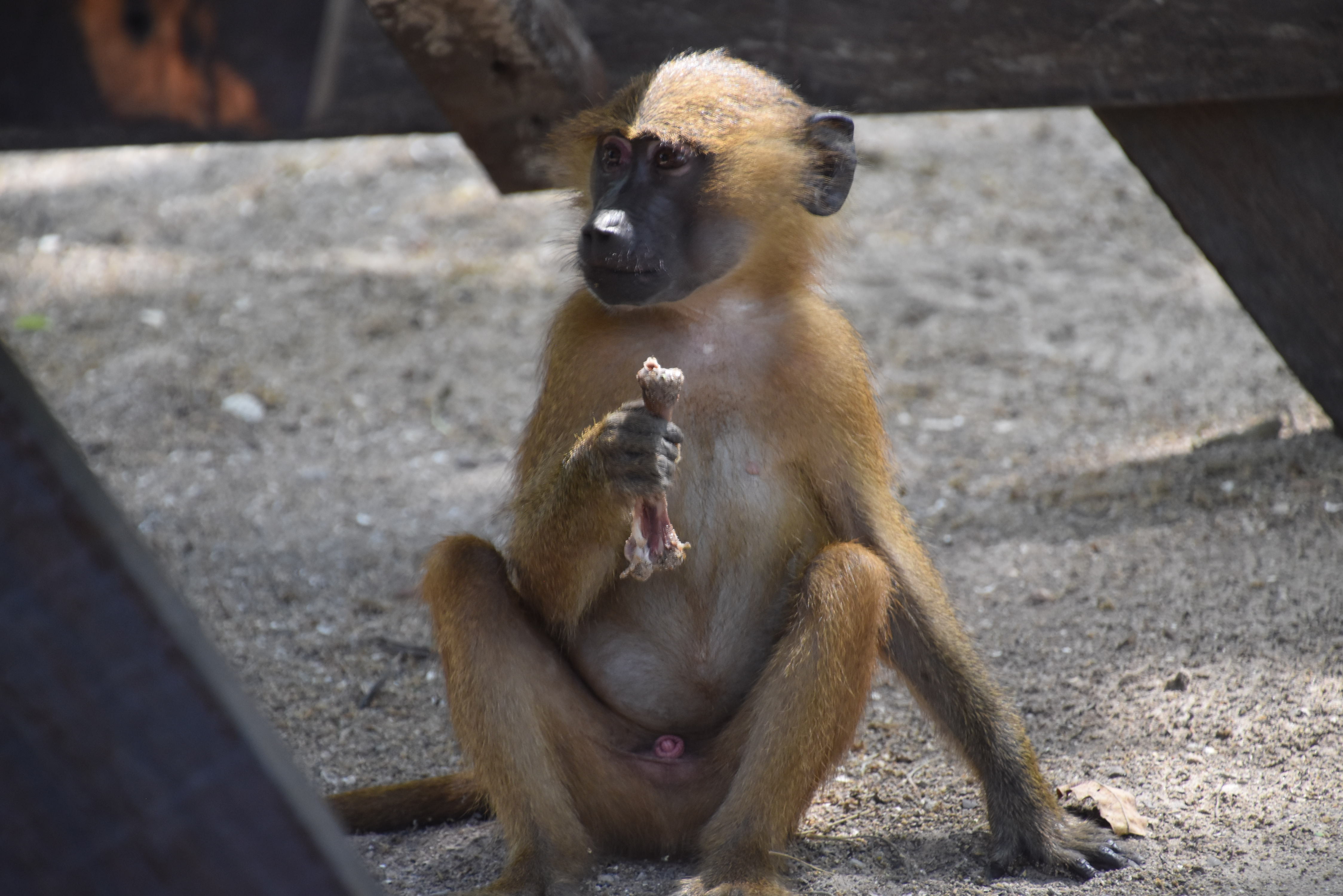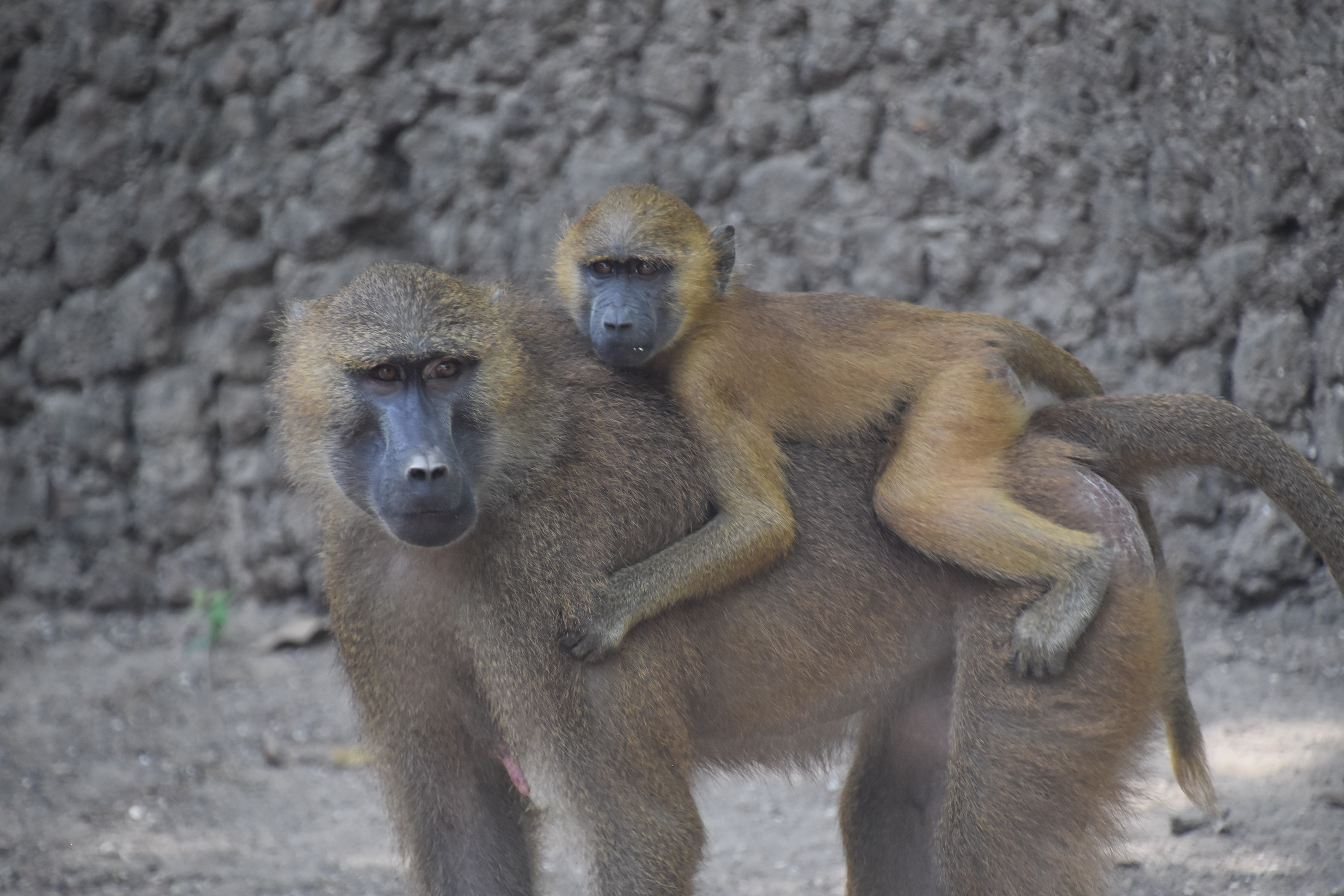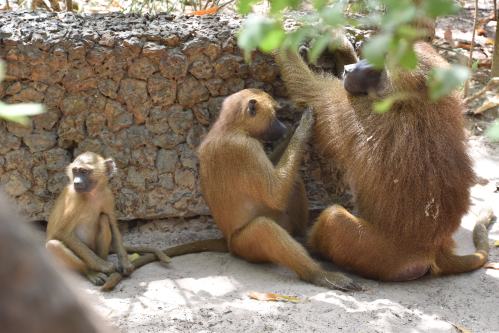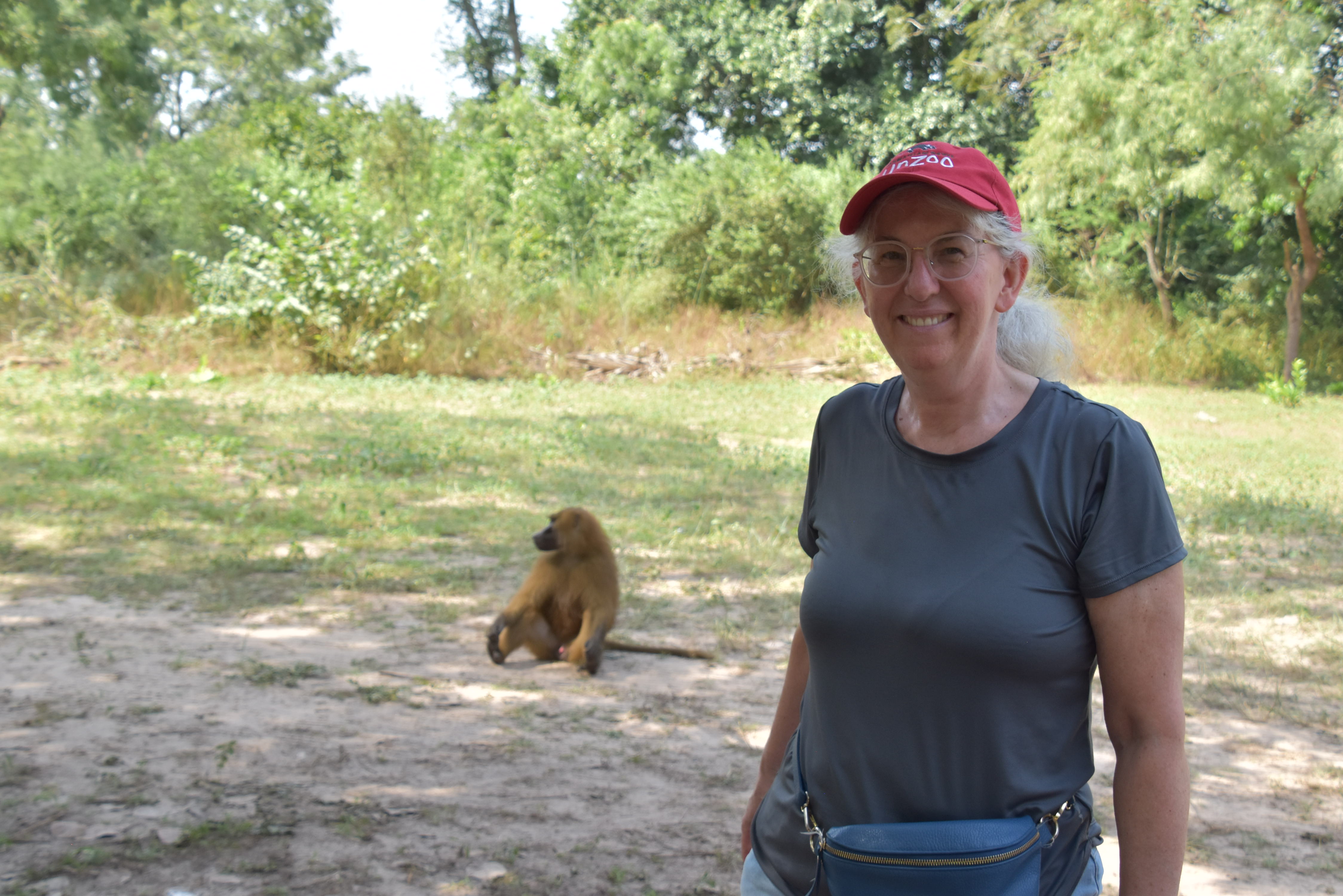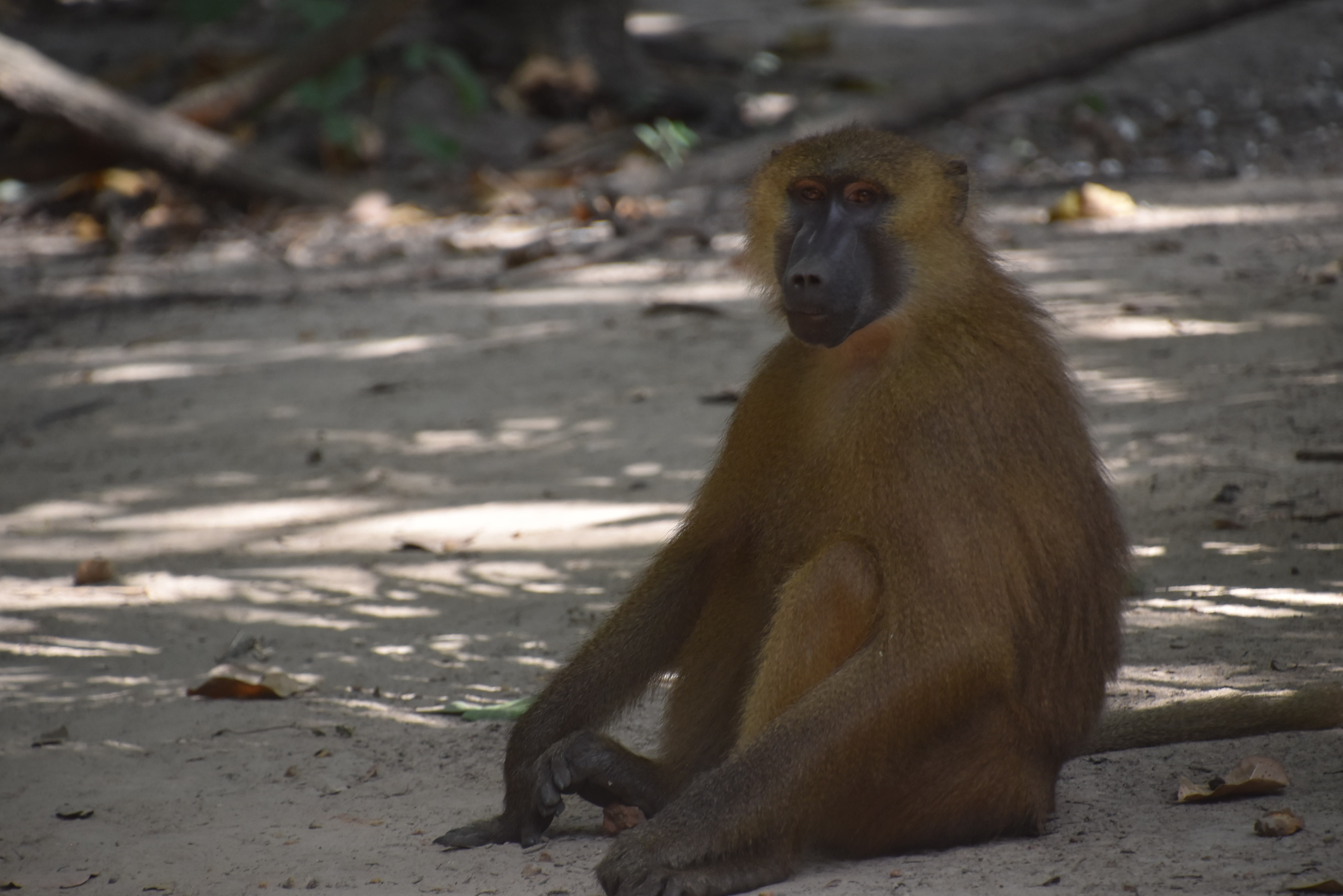 Plusieurs animaux vivent en liberté en Gambie : antilopes, hippopotames, chèvres, gazelles, ânes, et beaucoup, beaucoup de singes. Dans la forêt culturelle de Kamasutu, je rencontre plusieurs familles de babouins. S’ils n’ont pas peur des humains, il faut s’abstenir de les dévisager, car certains peuvent devenir agressifs, surtout les adultes. Il faut les voir se regrouper autour des ânes qui viennent de recevoir leur nourriture. Spectacle très impressionnant : un babouin énervé saute et crie sur le capot d’une voiture, comme pour donner le coup d’assaut; ses congénères accourent de tous les côtés pour tenter de voler la nourriture. Les ânes, quant à eux, braient à fendre l’âme en courant à leur tour pour effrayer les intrus. Je me tiens à l’écart, par prudence.
