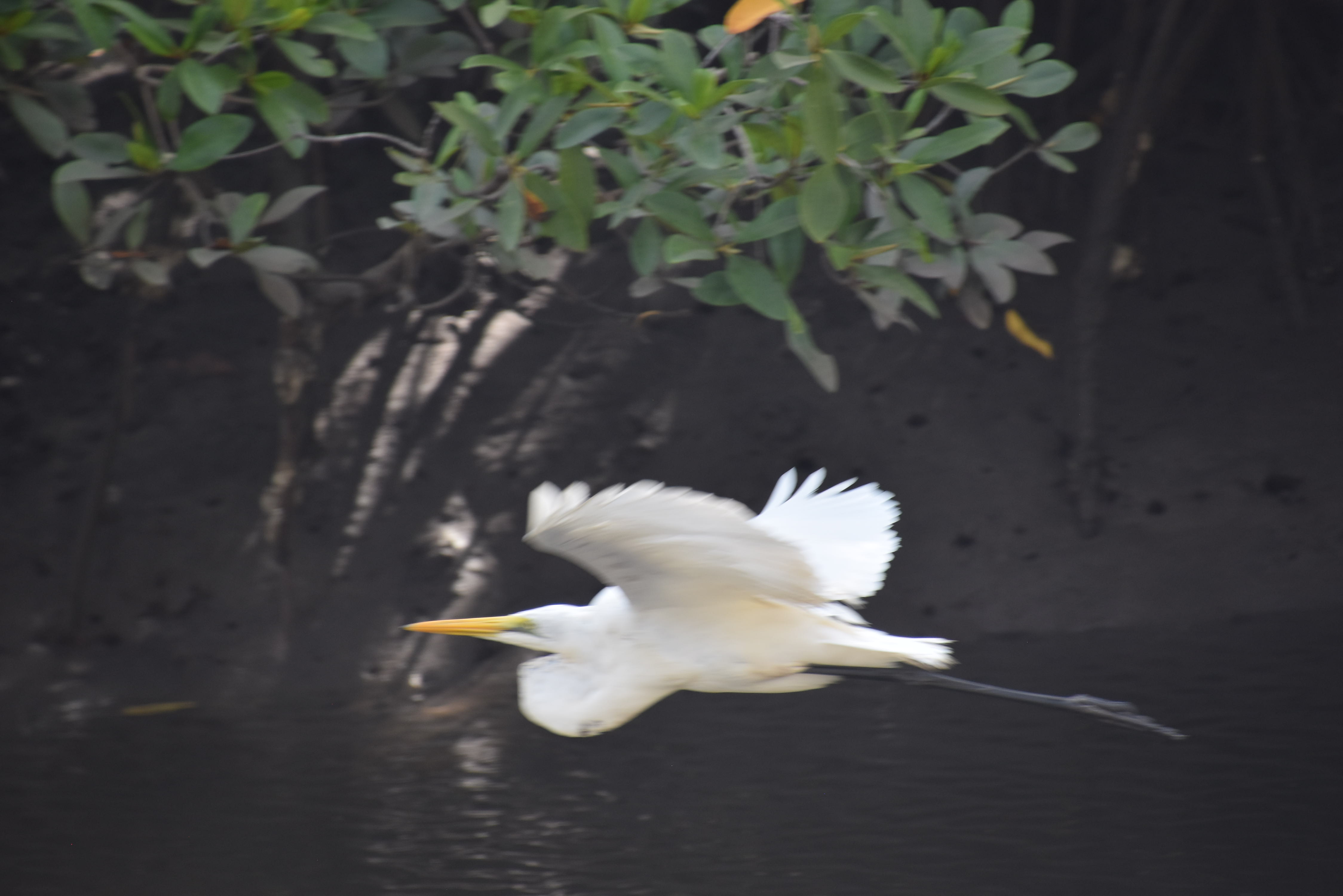 Sur un ruisseau bordant cette même forêt, des mangroves cachent des crocodiles. Cette végétation est constituée d’arbres et d’arbustes qui poussent dans un mélange d’eau douce et d’eau de mer. À bord d’un canot, je peux calmement observer quelques-unes des 500 espèces d’oiseaux, dont des hérons, et entendre les singes crier. Heureusement que le bruit des gens autour fait fuir les crocodiles…